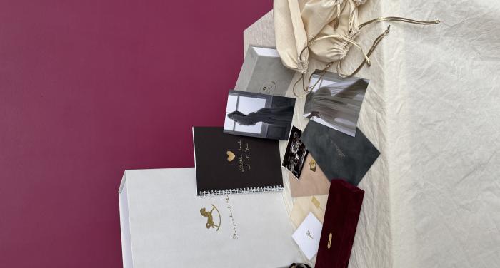 Aksominė, premium klasės prisiminimų dėžė, kurioje apgalvota kiekviena detalė. Švelnūs pasteliniai atspalviai, prabangūs aukso spalvos spaudiniai, aukštos kokybės medžiagos.