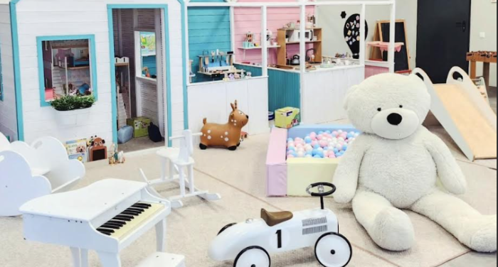 Studiją sudaro: didelė šventės erdvė su vaikų žaidimų zona ir mini koridoriumi, atskira virtuvėlė ir erdvus tualetas.