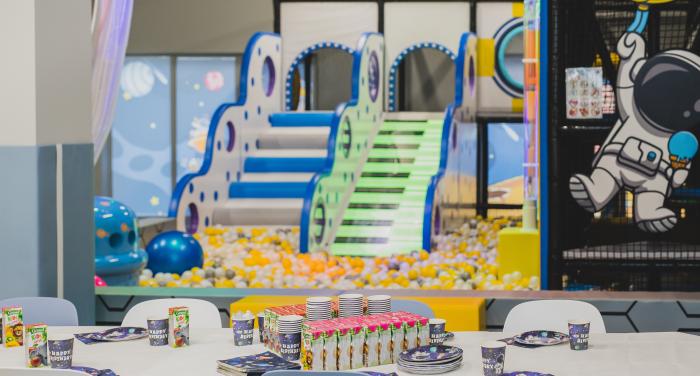 Aukščiausios kokybės įranga: Modernios dviejų aukštų konstrukcijos, žaidimų nameliai, lazerinė siena interaktyvioms pramogoms, stilingas kamuoliukų baseinas bei edukacinės erdvės.
