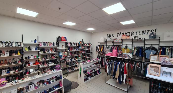 * Turimą prekių likutį – įvairių dydžių vaikiška avalynė ir drabužiai