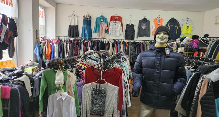 * Įvairus prekių asortimentas (dėvėti drabužiai, avalynė).