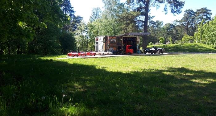 - Organizuoti išvažiuojamuosius renginius pas klientus – tam yra paruoštas konteineris ir priekaba transportavimui (tinka “B” kategorijos vairuotojo pažymėjimas);