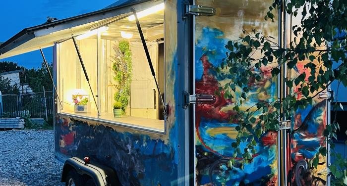 Parduodama įrengta prekybinė priekaba, išskirtinio ir unikalaus dizaino. Viduje išvedžiota el. instaliacija, įrengtos 4 rozetės, bendras ir prekystalio apšvietimas. Viduje rakinamos spintelės, stalčius. Priekaboje yra įrengta kabykla rūbams, dextera žaliuzė. Du veidrodžiai. Naujos padangos. Techninė apžiūra galioja iki 2025-09-26.